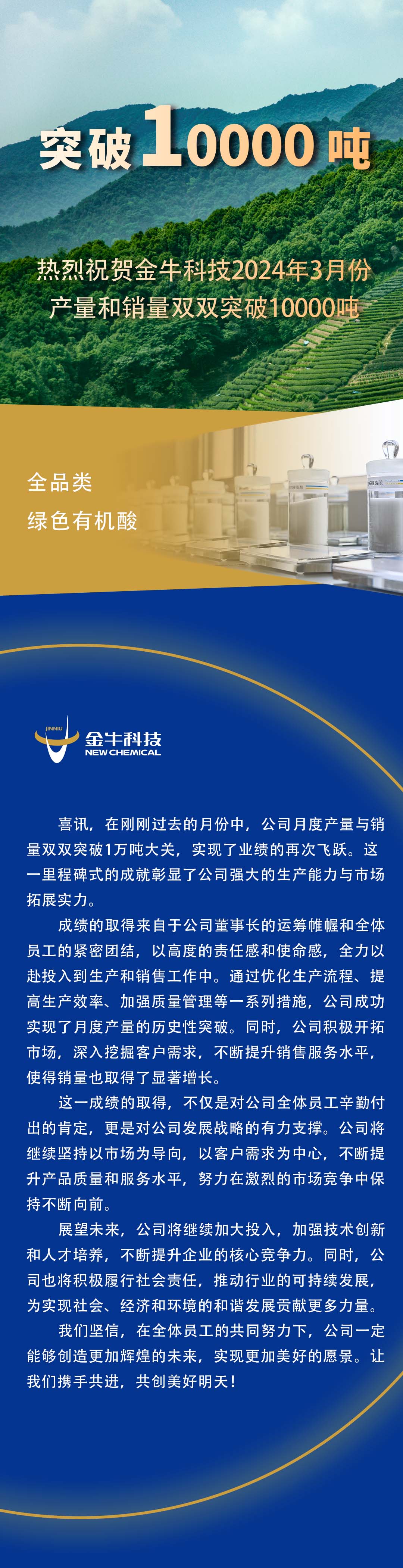 喜訊,金??萍?024年3月產(chǎn)量和銷量雙雙突破10000噸